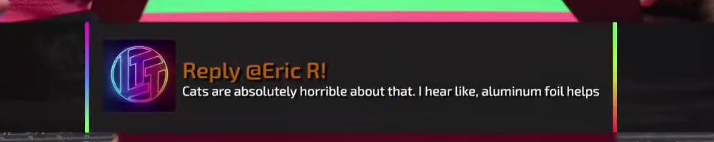 Cats are absolutely horrible about that. I hear like, aluminum foil helps | Timestamp |  |