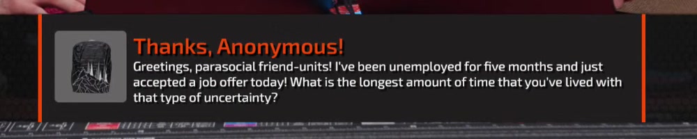 Greetings, parasocial friend-units! I've been unemployed for five months and just