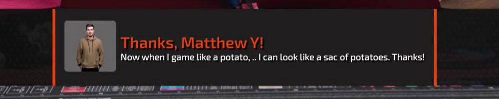 Now when I game like a potato,.. I can look like a sac of potatoes. Thanks! | Timestamp |  |