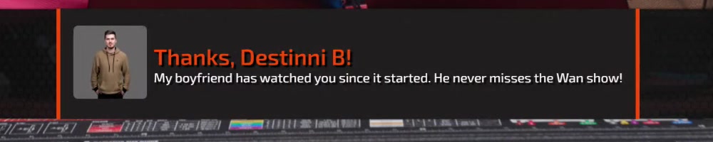 My boyfriend has watched you since it started. He never misses the Wan show! | Timestamp |  |