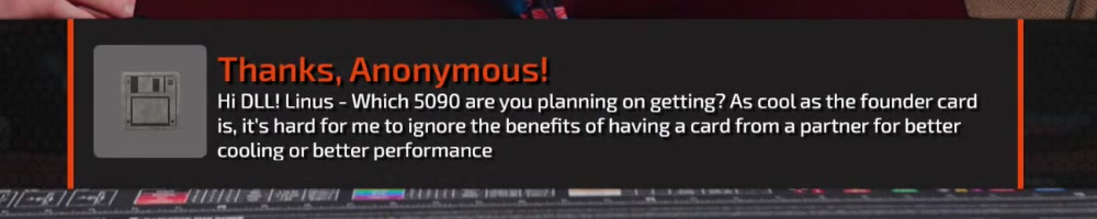 Hi DLL! Linus - Which 5090 are you planning on getting? As cool as the founder card