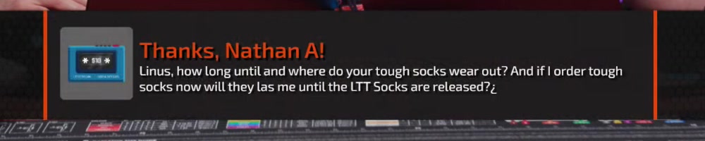 socks now will they las me until the LTT Socks are released?¿ | Timestamp |  |