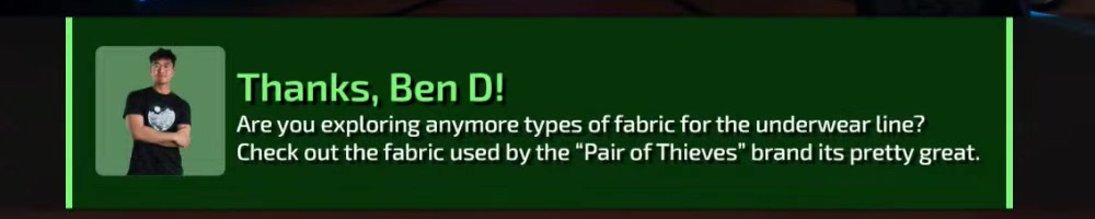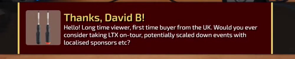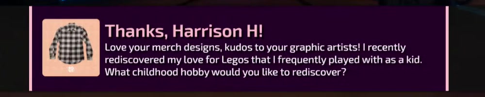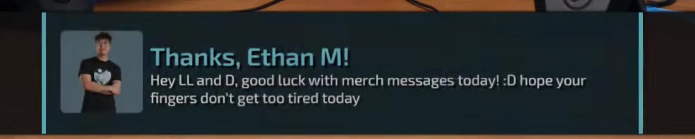 Hi L, L&D! Hi from Scotland! Is there a merch item you want to make