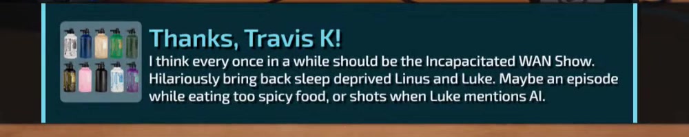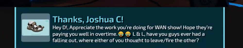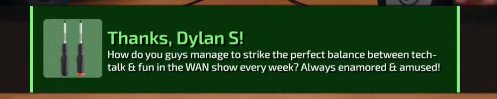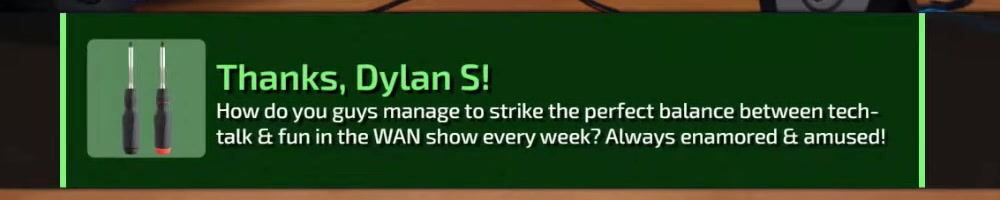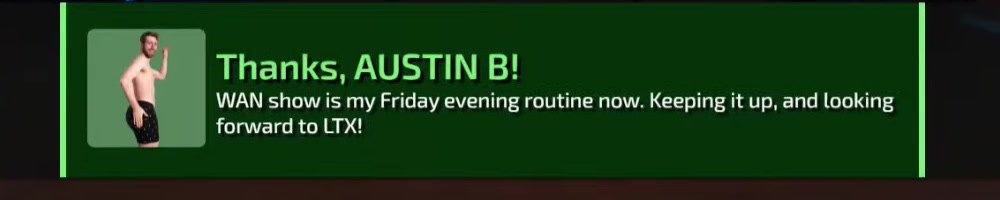 WAN show is my Friday evening routine now. Keeping it up, and looking