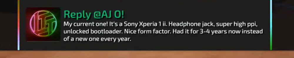 My current one! It's a Sony Xperia 1ii. Headphone jack, super high ppi,
