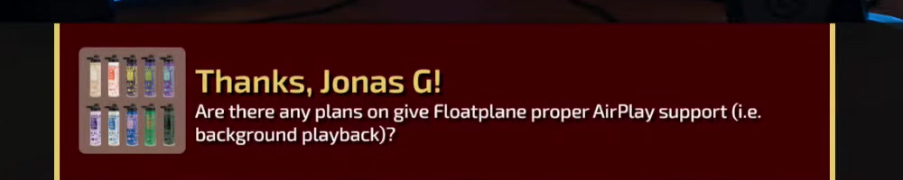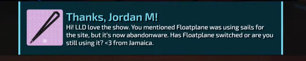 Hi! LLD love the show. You mentioned Floatplane was using sails for