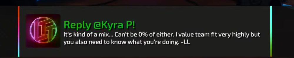 It's kind of a mix... Can't be 0% of either. I value team fit very highly but