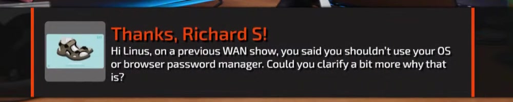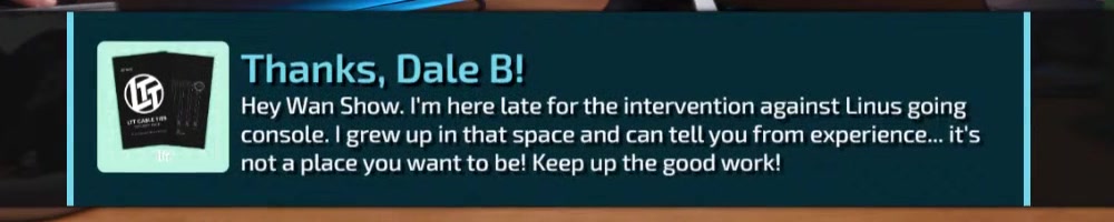 Hello Both, on a WAN show many moons ago you mentioned that you