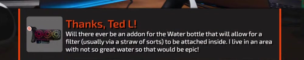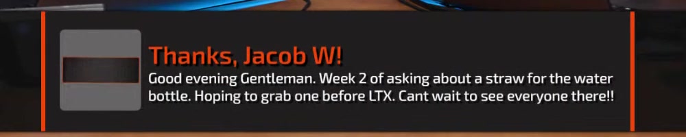 \; Good evening Gentleman. Week 2 of asking about a straw for the water