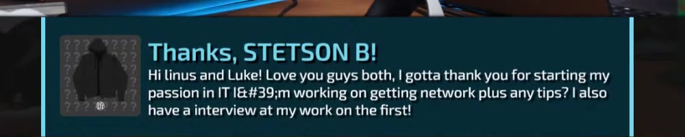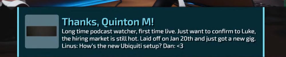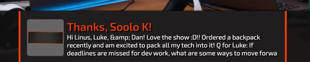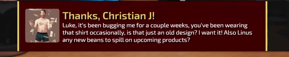 m Hi Linus, Luke, Dan, and Team, I'm a long time fan and congrats on being