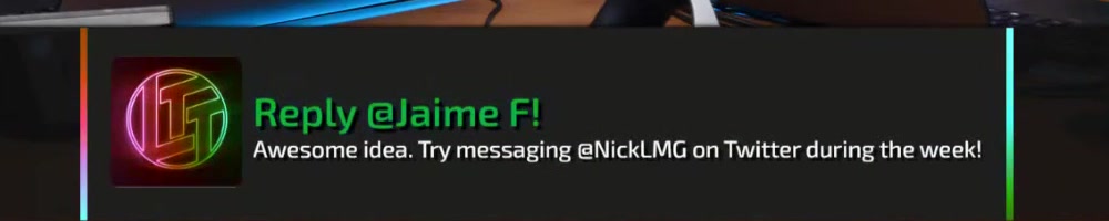 Awesome idea. Try messaging @NickLMG on Twitter during the week!