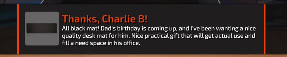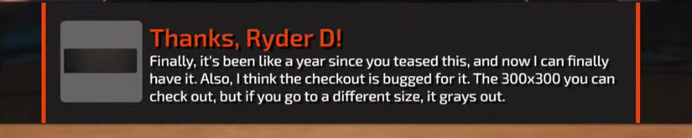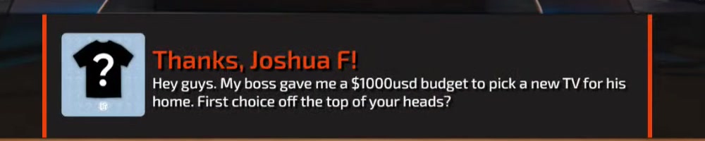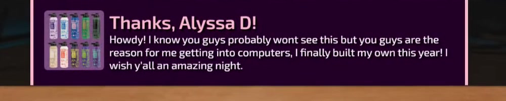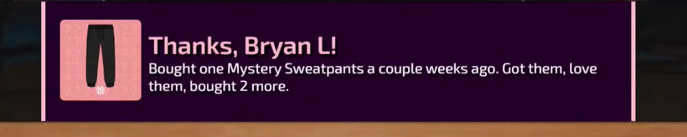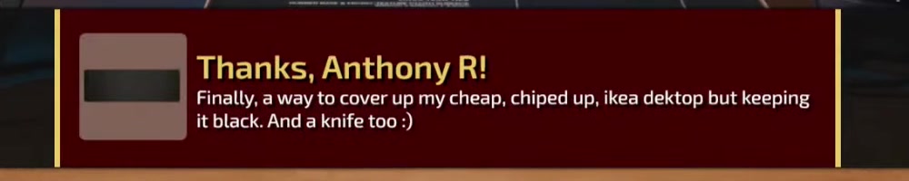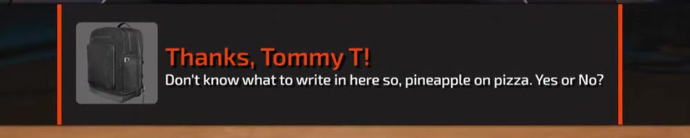 | TomatoSlayer | message | Thanks, TomatoSlayer!