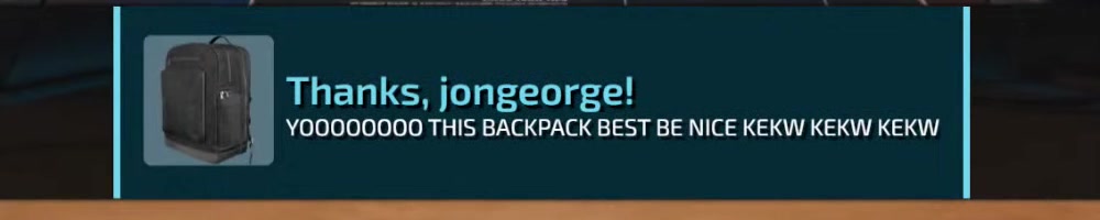 'YO0000000 THIS BACKPACK BEST BE NICE KEKW KEKW KEKW