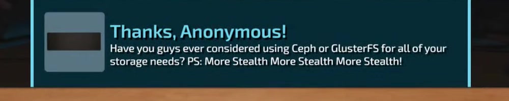 Have you guys ever considered using Ceph or GlusterFs for all of your