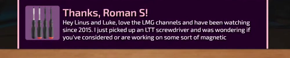 Hi Luke and Linus. After seeing all the reviews on the LTT screwdriver,