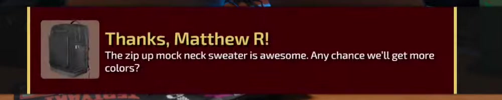 uncomfortable for me). Any plans on expanding pullover offerings? | Timestamp |  |