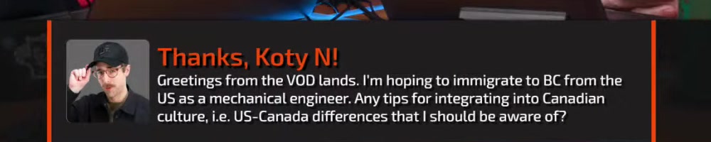 culture, i.e. US-Canada differences that I should be aware of? | Timestamp |  |