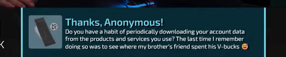 doing so was to see where my brother's friend spent his V-bucks | Timestamp |  |