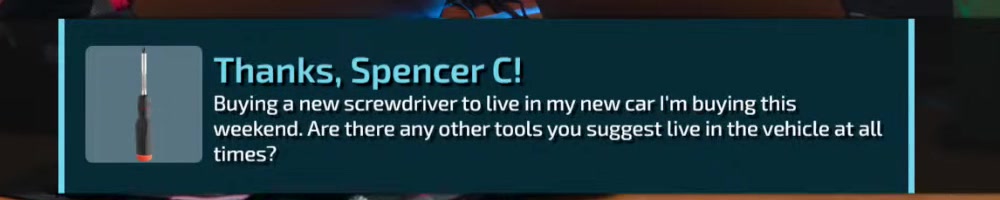 weekend. Are there any other tools you suggest live in the vehicle at all