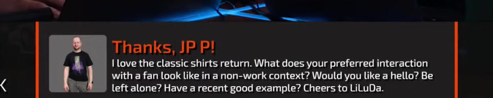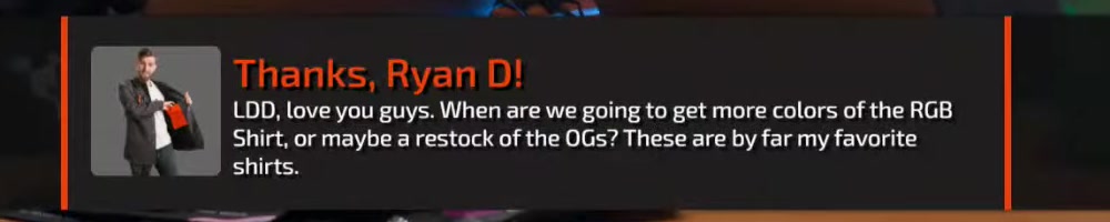 you excited about? More Tall shirts when? Thanks for all you do! | Timestamp |  |