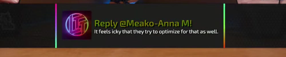 It feels icky that they try to optimize for that as well. | Timestamp |  |