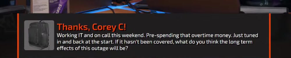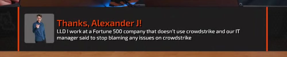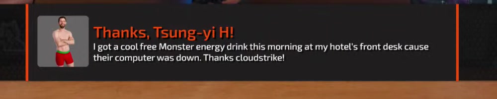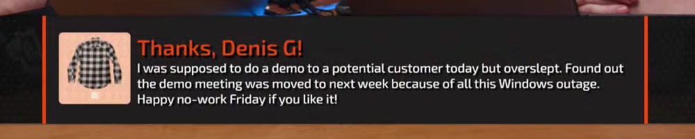 their computer was down. Thanks cloudstrike! | Timestamp |  |