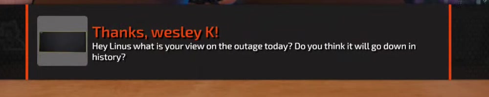 Hey Linus what is your view on the outage today? Do you think it will go down in