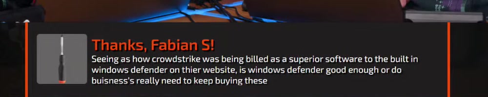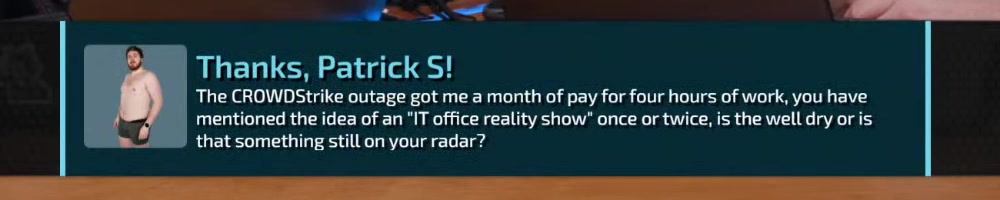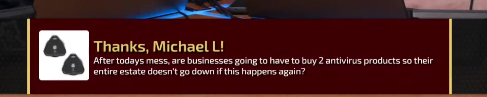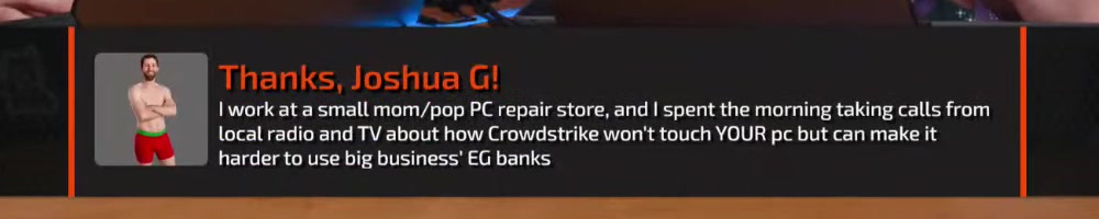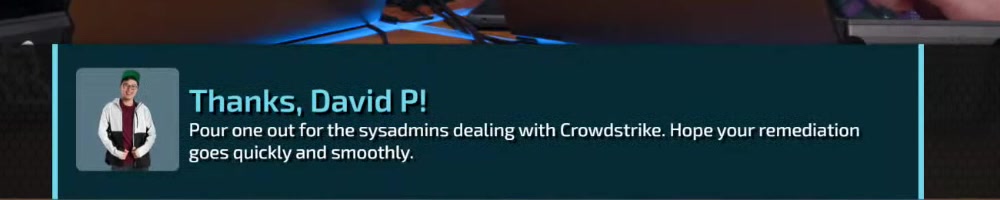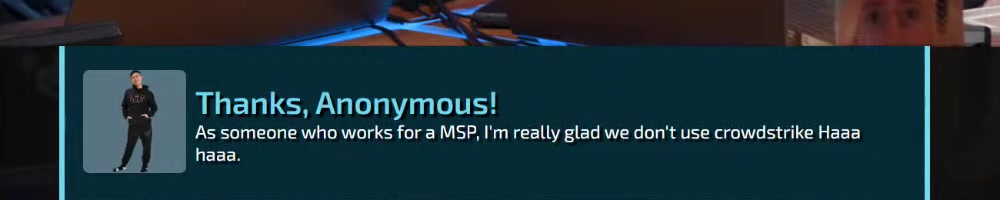 As someone who works for a MSP, I'm really glad we don't use crowdstrike Haaa