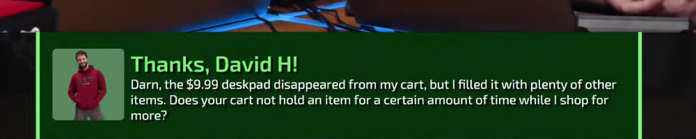 Thanks for the cheap mousepad | Timestamp |  |