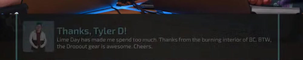 | Tyler H | message | Thanks, Tyler H!