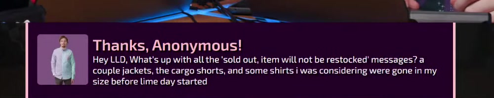 Hi LLD, great merch. What are your thoughts on how companies might look towards