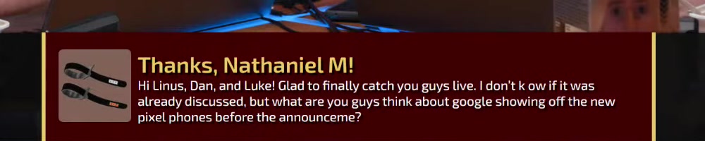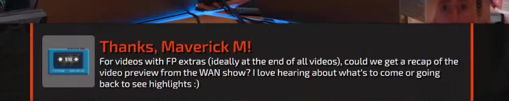 Love the Wan Show!! Keep up to great work! | Timestamp |  |