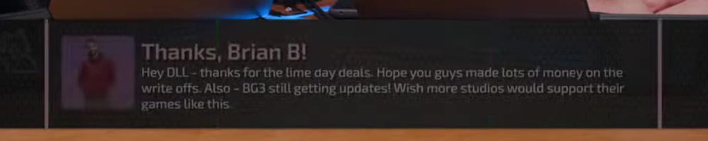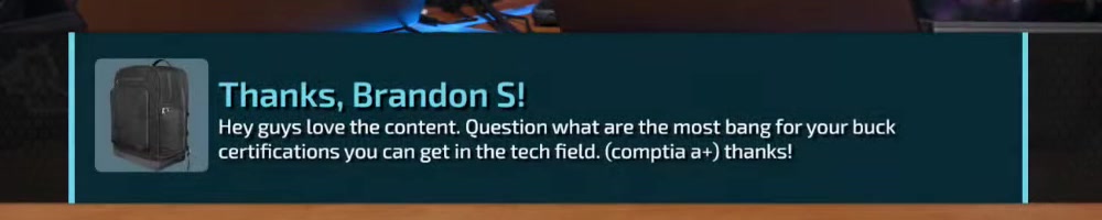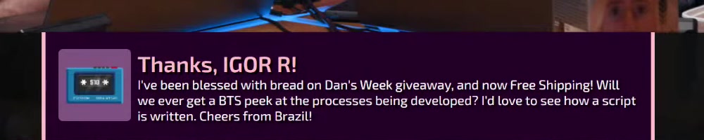 | Brandon F | message | Thanks, Brandon F!