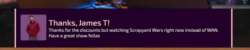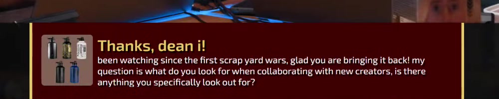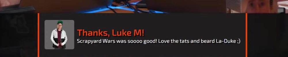 Scrapyard Wars was soooo good! Love the tats and beard La-Duke ;) | Timestamp |  |