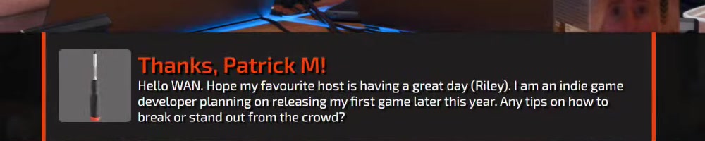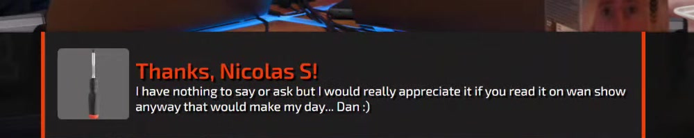 I have nothing to say or ask but I would really appreciate it if you read it on wan show