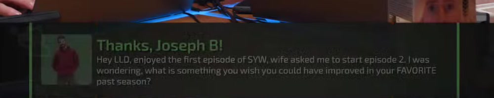 Hey LLD, enjoyed the first episode of SYW, wife asked me to start episode 2. I was