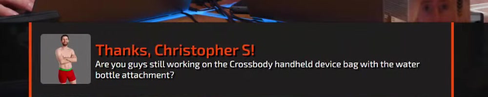 Are you guys still working on the Crossbody handheld device bag with the water