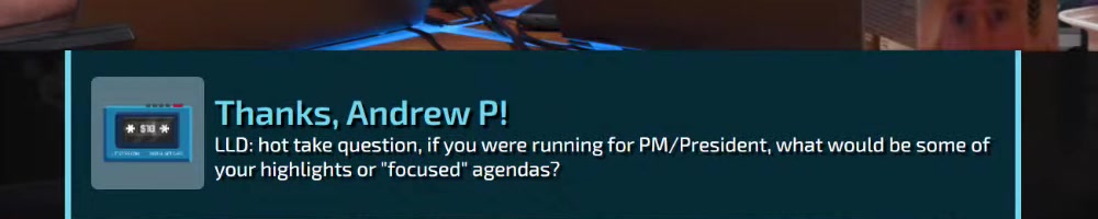 LLD: hot take question, if you were running for PM/President, what would be some of