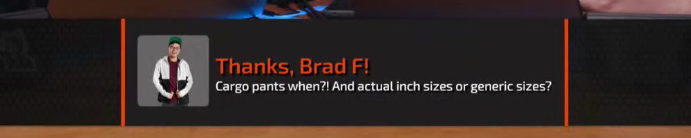 Cargo pants when?! And actual inch sizes or