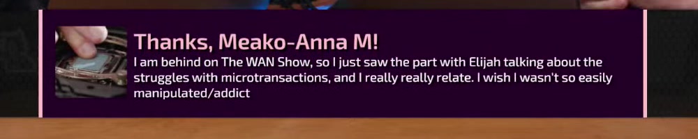 I am behind on The WAN Show, so I just saw the part with Elijah talking about the