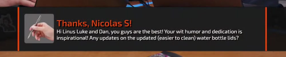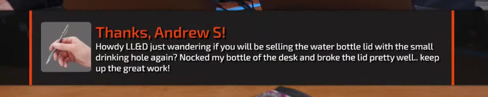 Any chance of getting an LTT waterbottle with a handle and straw lid? | Timestamp |  |