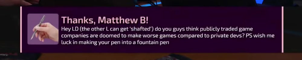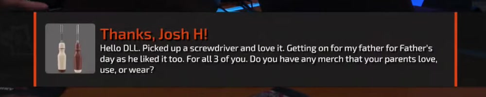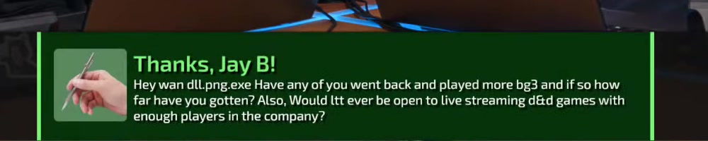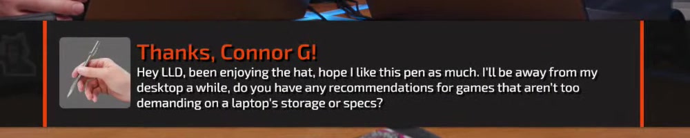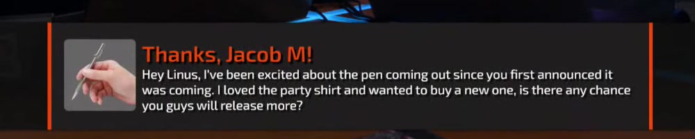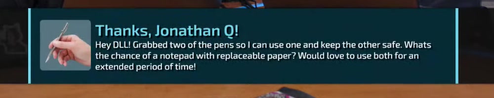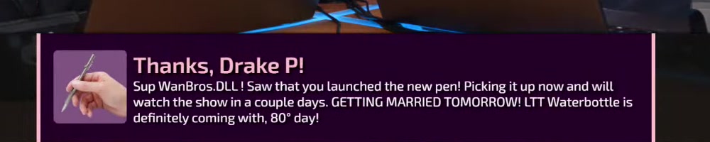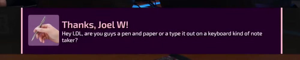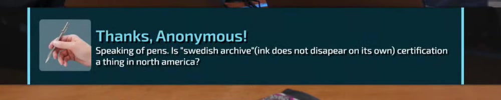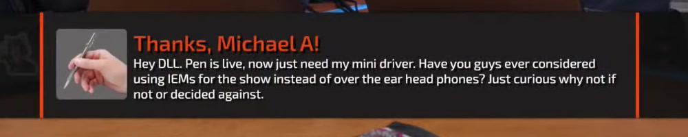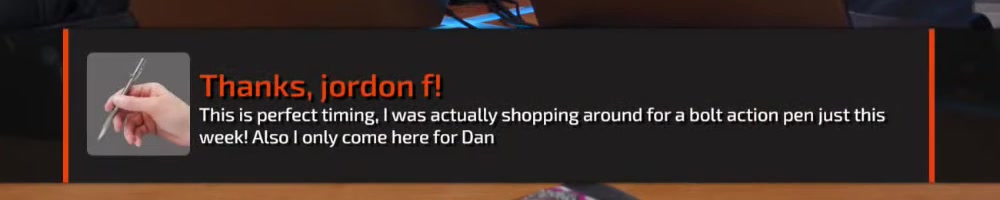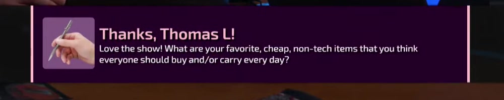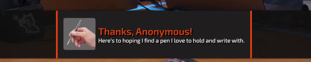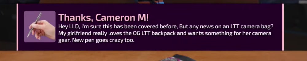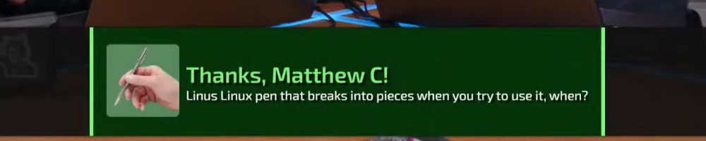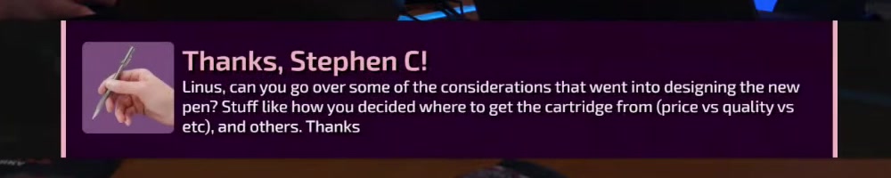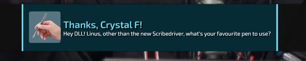 Hey DLL! Linus, other than the new Scribedriver, what's your favourite pen to use? | Timestamp |  |