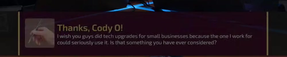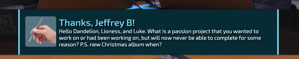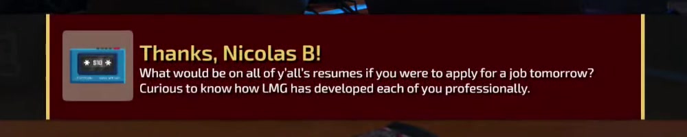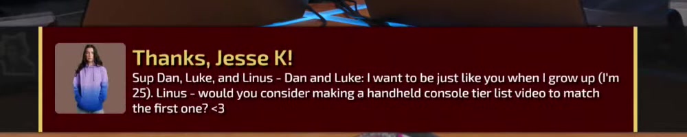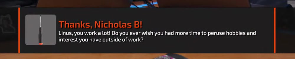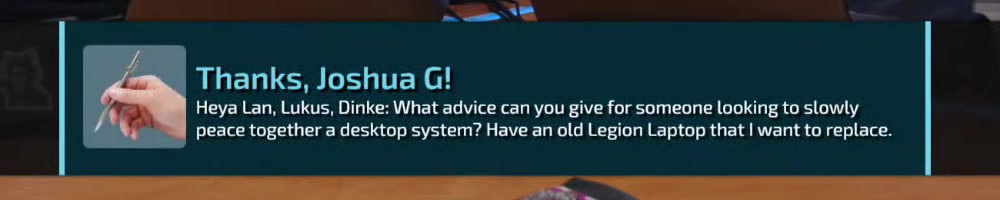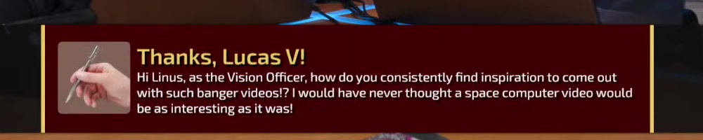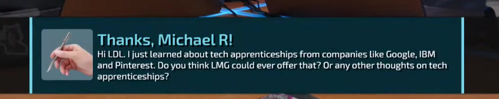 Happy Friday! To either Linus or Luke | Timestamp |  |