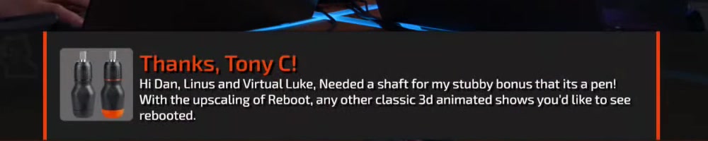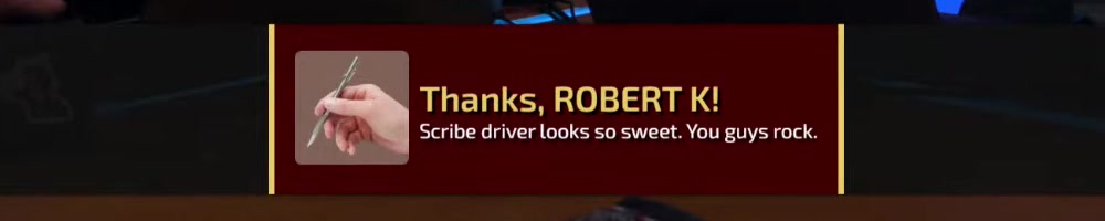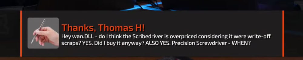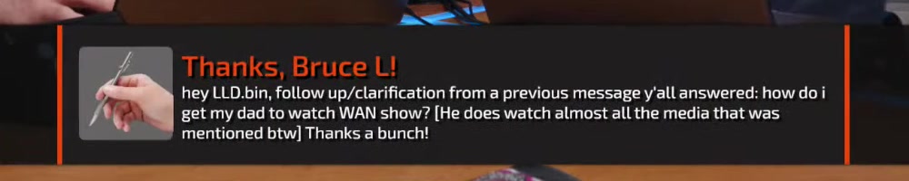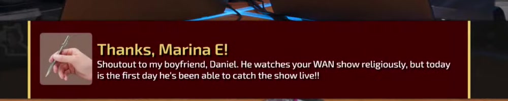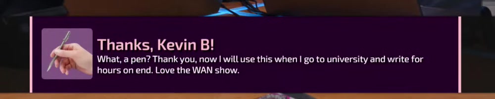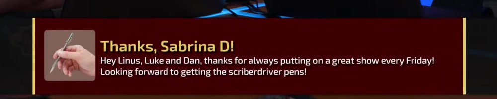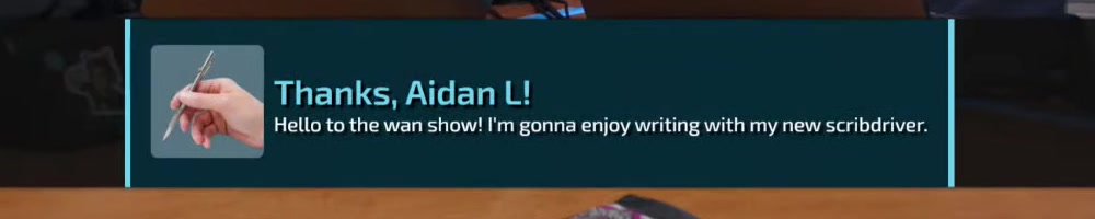 Hello to the wan show! I'm gonna enjoy writing with my new scribdriver. | Timestamp |  |