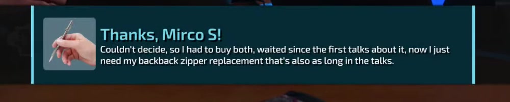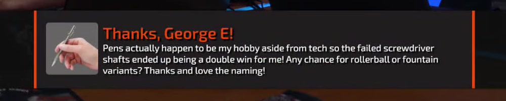 Perfect timing on this release, I needed a new fidget toy... I mean pen. | Timestamp |  |