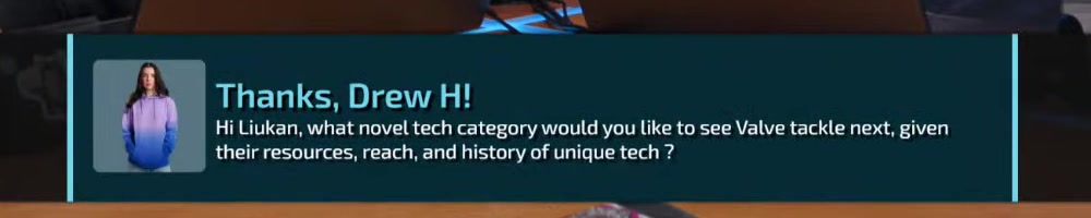 Hi Liukan, what novel tech category would you like to see Valve tackle next, given