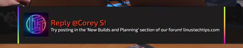 Try posting in the 'New Builds and Planning' section of our forum! linustechtips.com | Timestamp |  |