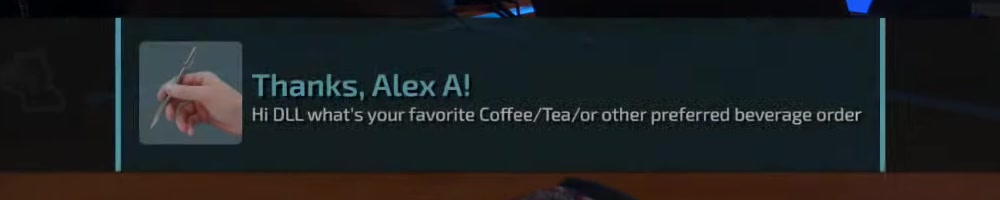 Hi DLL what's your favorite Coffee/Tea/or other preferred beverage order | Timestamp |  |
