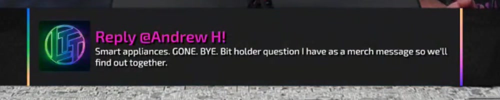 Smart appliances. GONE. BYE. Bit holder question I have as a merch message so we'll