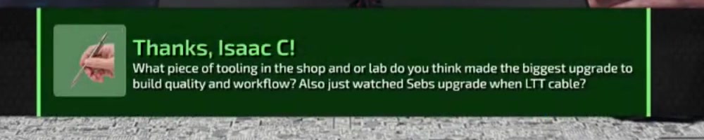 build quality and workflow? Also just watched Sebs upgrade when LTT cable? | Timestamp |  |